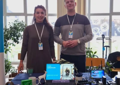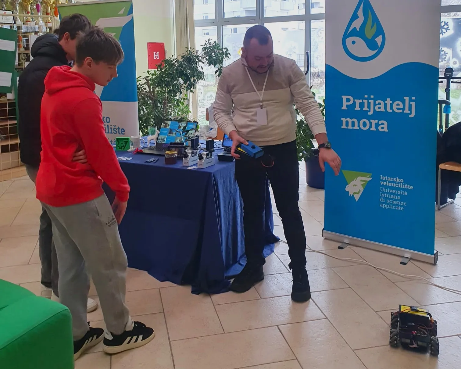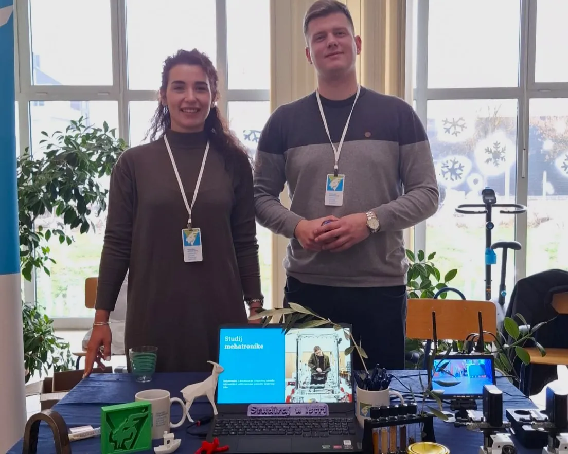 Na štandu u auli škole, sa zainteresiranim učenicima mogli smo razgovarati 1 na 1. Odgovarali smo na brojna pitanja, dodatno prezentirali mogućnosti za koje nije bilo vremena u inicijalnom izlaganju te učenicima dali da isprobaju uratke naših studenata poput automobila na daljinsko upravljanje koji ih je oduševio.
